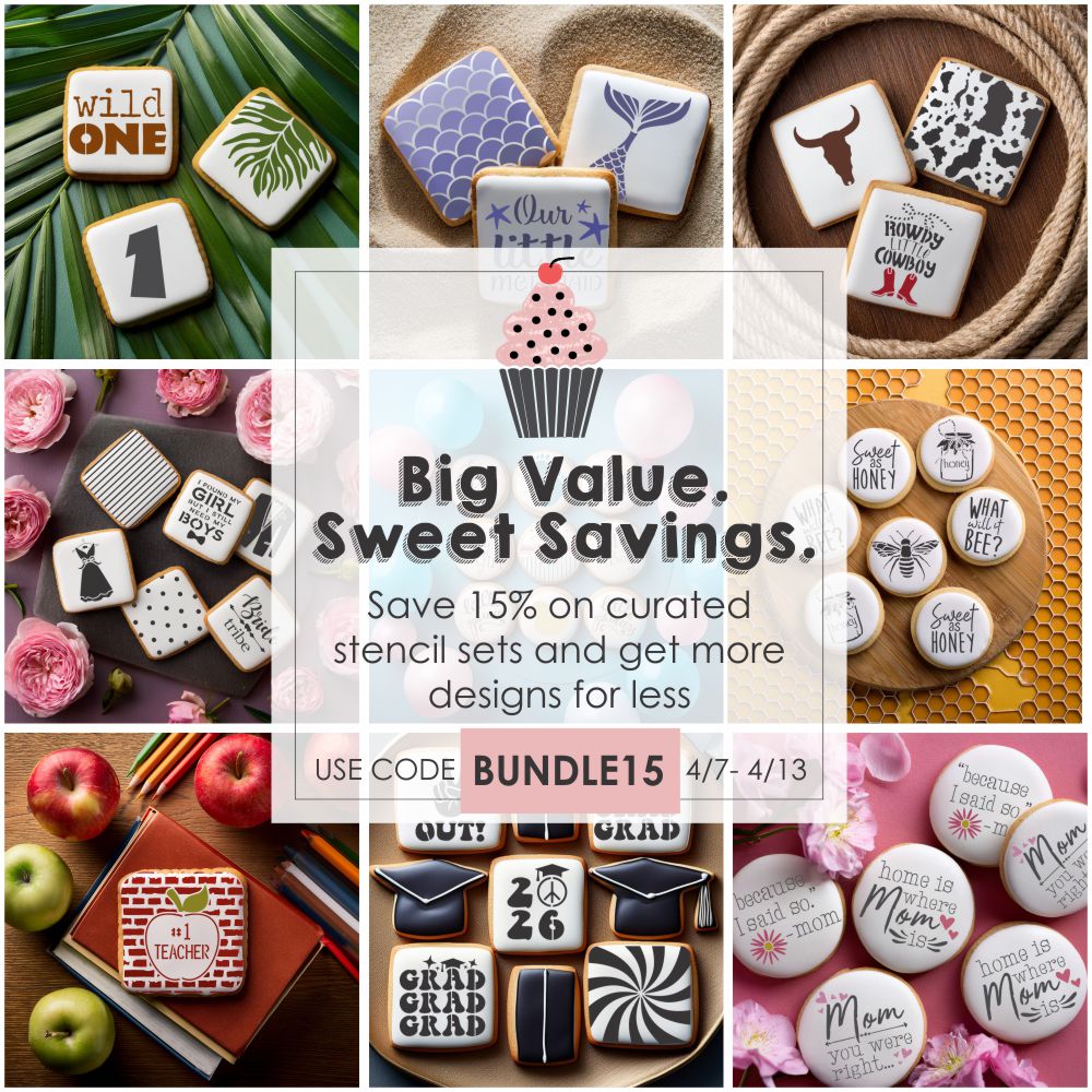 Our lowest price on top cookie stencils. Up to 60% off the original price! Sale stencils cannot be combined with any other offers and is NOT available for BOGO sales!