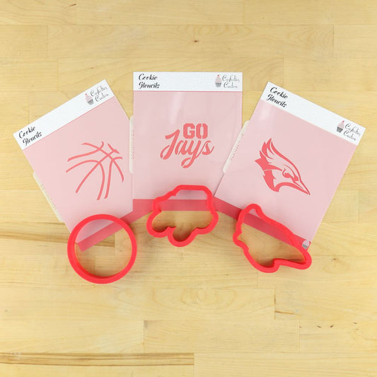 Sports Cookie Stencils are a sweet way to celebrate a sports or athletic themed birthday party. Cheer on your team with Cheerleader Cookie Stencils . Team parents will Score big points at the end of season banquet with Football Field cookies & cakes. Whatever your sport, we'd love to help make your event a success. Choose from our football, basketball, soccer, baseball and tennis cookie stencils. Or go to our custom page and let us know what you're looking for!