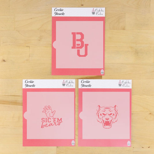 Sports Cookie Stencils are a sweet way to celebrate a sports or athletic themed birthday party. Cheer on your team with Cheerleader Cookie Stencils . Team parents will Score big points at the end of season banquet with Football Field cookies & cakes. Whatever your sport, we'd love to help make your event a success. Choose from our football, basketball, soccer, baseball and tennis cookie stencils. Or go to our custom page and let us know what you're looking for!