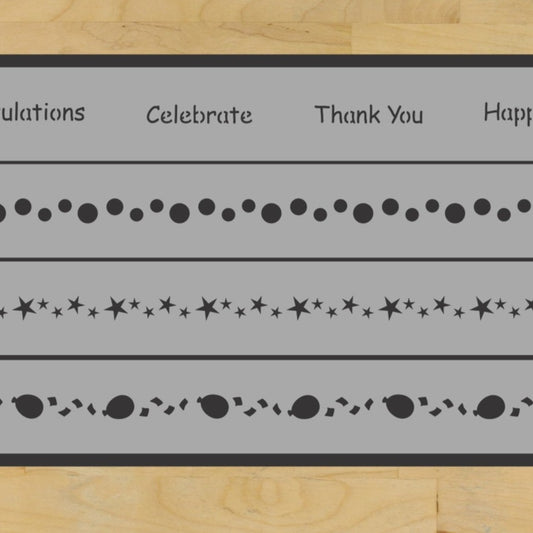 Confetti and Streamers Cake Stencil Side by Designer Stencils