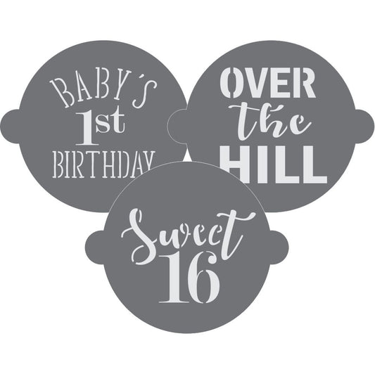 Large Script Celebration Cake Side Stencil Set by Designer Stencils