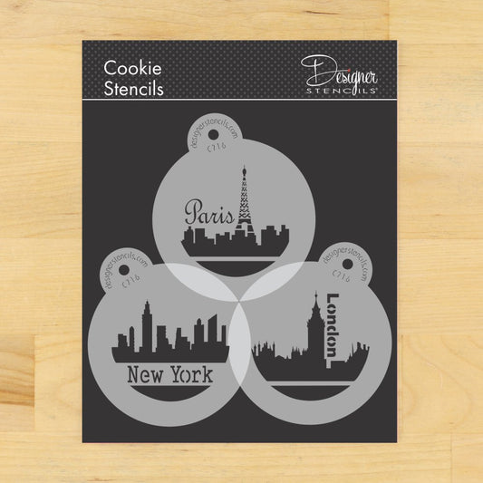 City Skylines Round Cookie Stencil Set by Designer Stencils