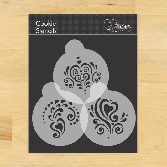Swirl Valentine Heart Round Cookie Stencil Set by Designer Stencils