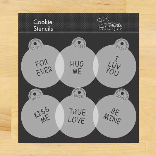 Candy Heart Sayings Round Cookie Stencil Set by Designer Stencils