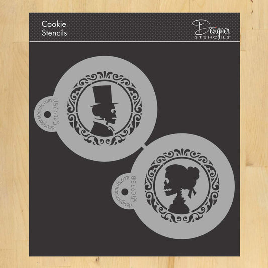 Skeleton Couple Round Cookie Stencil Set by Designer Stencils