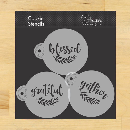 Grateful Blessed Gather Round Cookie Stencil Set by Designer Stencils