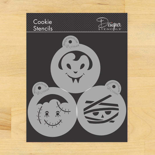 Dracula, Mummy and Frankenstein Monster Cookie Stencil Set by Designer Stencils