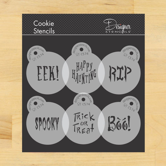 Halloween Sayings Round Cookie Stencil Set by Designer Stencils