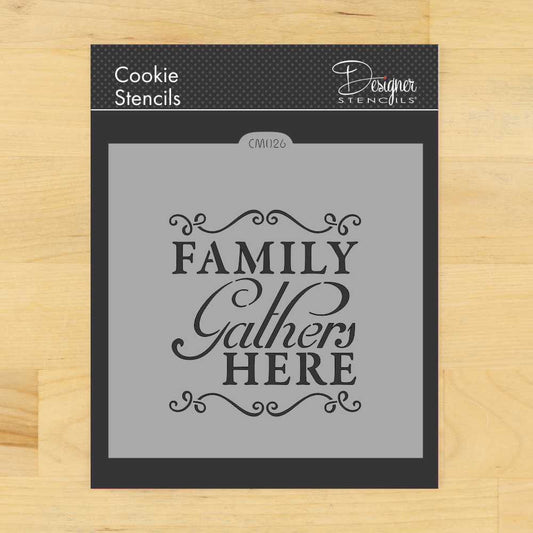 Family Gathers Here Cookie Stencil by Designer Stencils