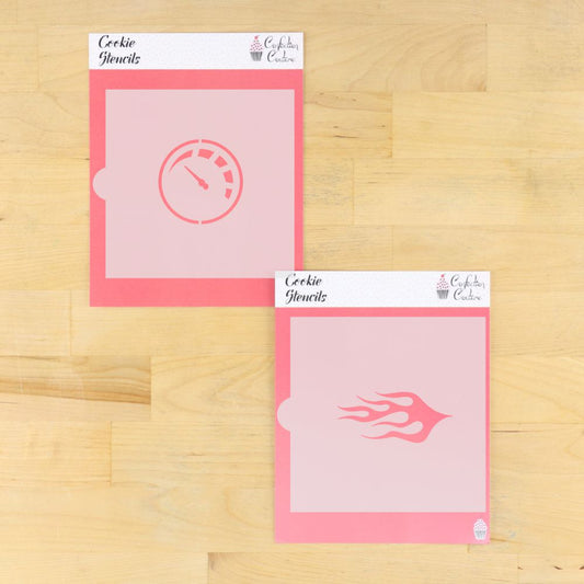Race Car Speedometer and Flame Cookie Stencil