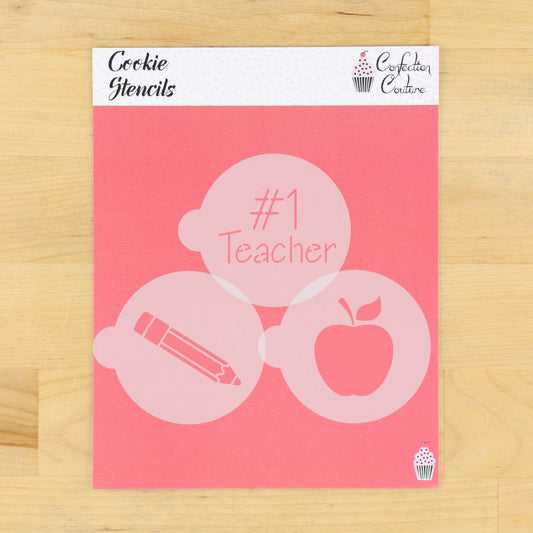 Number 1 Teacher Round Cookie Stencil 3 Pc Set