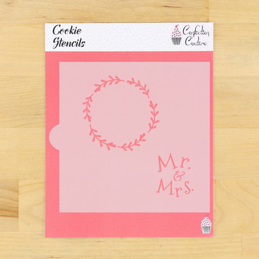 Mr. and Mrs. With Laurel Wreath Cookie Stencil