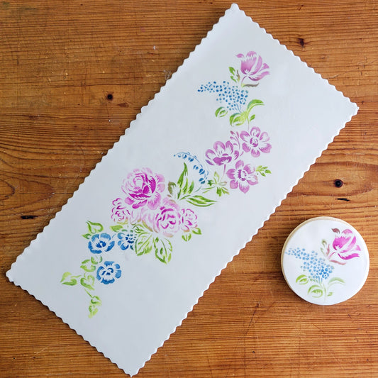 Cottage Rose Spray Cake Stencil Side by Designer Stencils