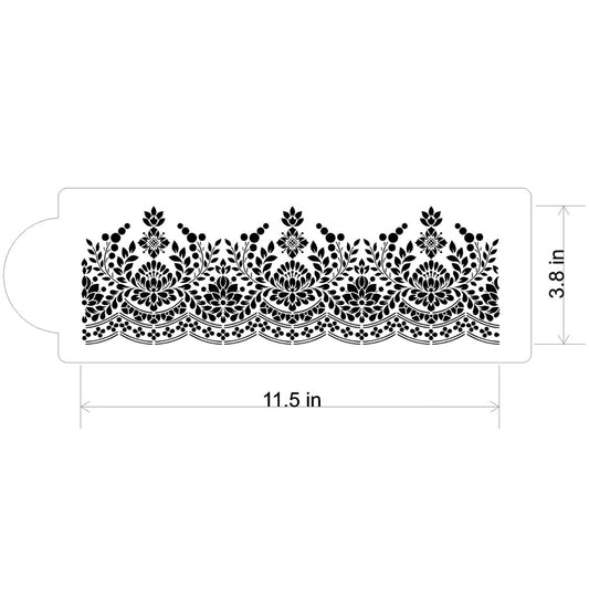 Alencon Floral Lace Swag Cake Stencil Side by Designer Stencils