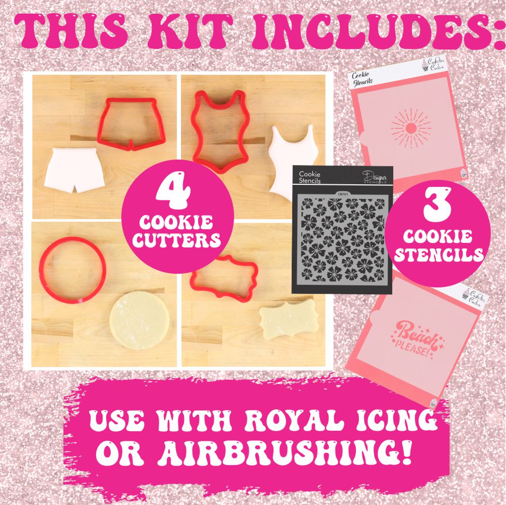Decorate cookies for any Beach Theme Party with our Beachy Keen Cookie Decorating Kit 😎! Featuring three summery, beach cookie stencils and three matching cookie cutters, this kit is perfect for seasoned decorators or beginners! We give you the tools, then you choose whether to use it with airbrushing or royal icing. Plus, receive a 25% off coupon for your next purchase!Â