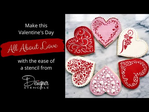 Get ready to add a touch of romance to your Valentine's Day or wedding cookies with our Floral Hearts Cookie Stencil Set by Designer Stencils. The delicate hand-drawn flowers, leaves, and berries create a natural and whimsical feel to your heart shaped treats. It's easy to make the perfect heart shaped cookies with the stencils fitting most 4 inch heart shapes. Don't miss the chance to make your special someone feel loved with this fun and festive cookie stencil set! Can be used with both royal icing and airbrushing.