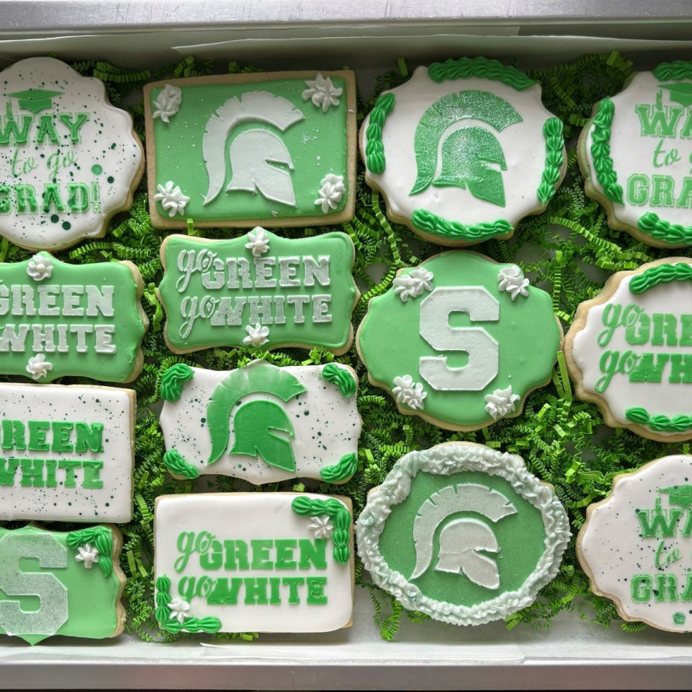 Fun set for any Sparty fan! Use this three piece cookie stencil set to decorate cookies for football and basketball games or even birthday parties and graduation! Complete your game-day treats with our other football cookie stencils, basketball cookie stencils and graduation cookie stencils!