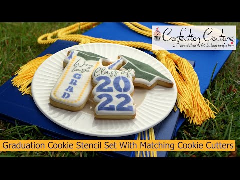 This Graduation Cookie Stencil Set With Cookie Cutters is the ideal choice for upcoming 2026 graduation parties! With decorative graduation cookie stencils , you can create beautiful treats that will help you celebrate the Class of 2026 in style. Check out our Graduation cookie stencil blog for step by step instructions and full supply list on this project!