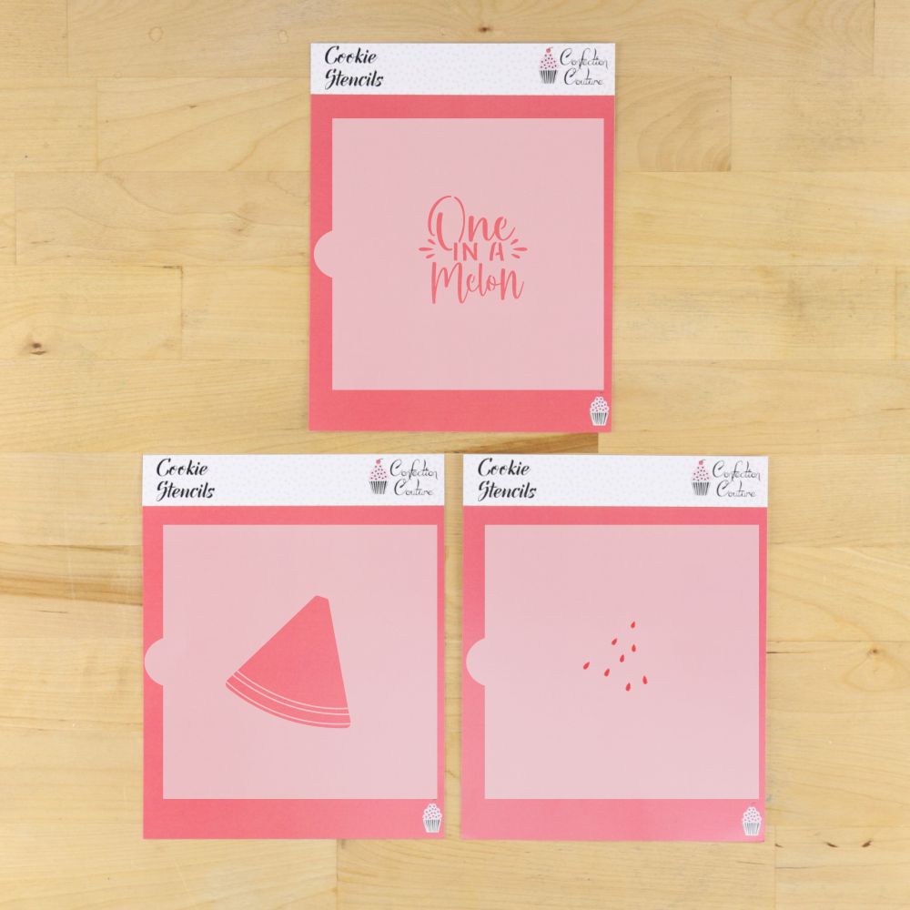 Celebrate a "one in a melon" birthday with these watermelon cookie stencils! Perfect for decorating sweet treats at the party. Bundle all three designs or purchase them separately. Don't forget to grab our watermelon shaped cookie cutter for the best results!