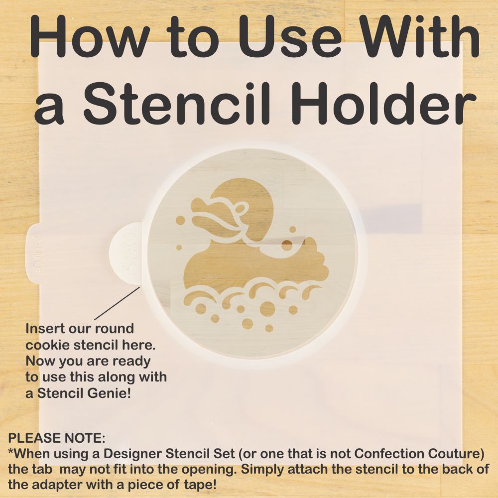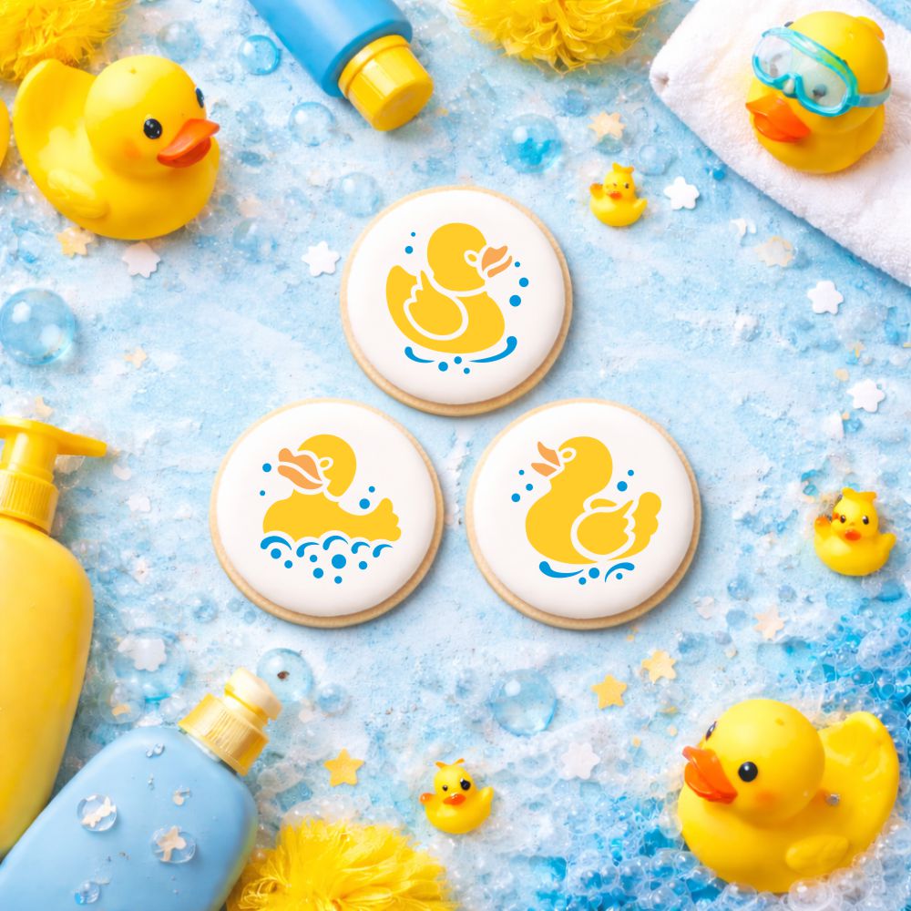 Add a playful touch to your baked goods with our Rubber Duckies Round Cookie Stencil Set. Featuring three adorable designs, these stencils are perfect for baby showers or first birthdays. Perfectly capture the cuteness of rubber ducks in your treats! These stencils feature charming baby themed designs and come in two sizes to fit your decorating needs. Perfect for decorating macarons, cupcakes, cookies, and even Oreos!
