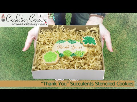 How to Stencil This Set: For a complete list of supplies used and a step by step tutorial on how to stencil these succulents, read our "Thank You" Succulents Cookie Stencils Blog.
