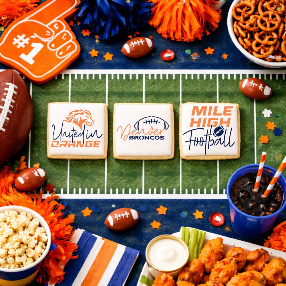 United in Orange Cookie Stencil Set makes it easy to create bold, Denver Broncos-inspired football cookies with a clean, professional finish. This versatile set includes coordinating cookie stencils and three matching cookie cutters, designed for seamless decorating from bake to finish. Perfect for royal icing, airbrushing, fondant, and dusting techniques, these stencils deliver crisp results for game day parties, tailgates, football celebrations, and Packers-themed events. A must-have cookie decorating set for bakers looking to create standout game day cookies with ease.