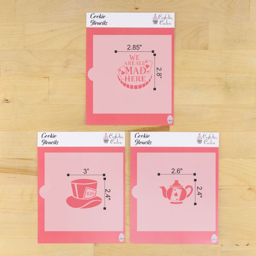 Unleash Whimsical Wonderland Cookies! šŖĀ Transform your sweet treats into a magical tea-party adventure with our We Are All Mad Here Cookie Stencil Set ā withĀ 3 matching cookie cutters! Designed for bakers who love creativity and precision, this enchanting set brings iconic Alice in Wonderland charm to every cookie.