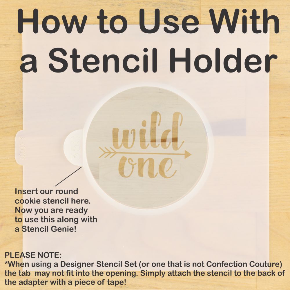 - Sheet Size: Stencil designs are on a 3 3/4" round sheet and won't fit into a standard Stencil Genie unless you use it in conjunction with a 3" Stencil Adapters for Round Cookie Stencils (the 3 inch one will isolate these designs, just affix this stencil to the adapter with a piece of tape.)