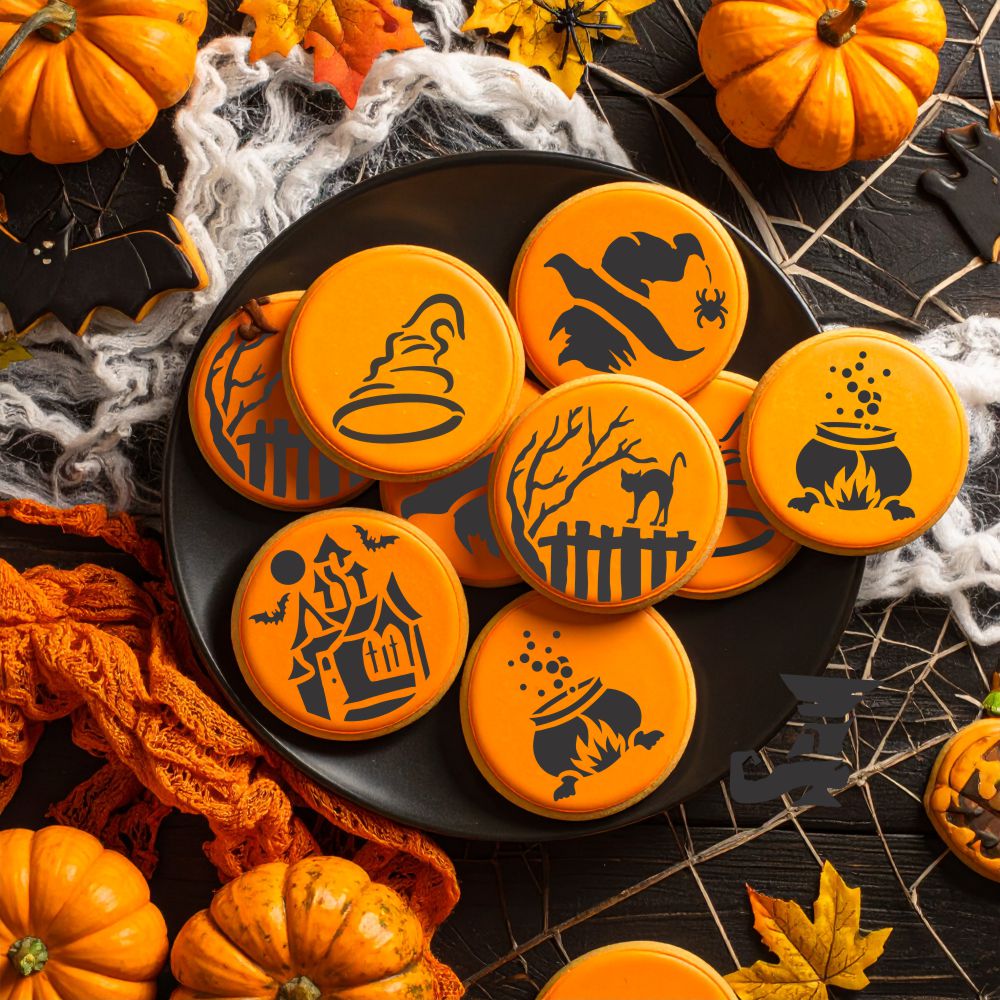 Get ready to create spook-tacular Halloween treats or decorate the tops of coffee drinks, cocktails and mocktails with these Round Cookie Stencils! Crafted from durable 10 mil food grade plastic, these six stencil sets fit perfectly within a 2 inch and 3 inch round cookies, making them ideal for high-quality and repeat use. Time to add some scary fun to your baking game!