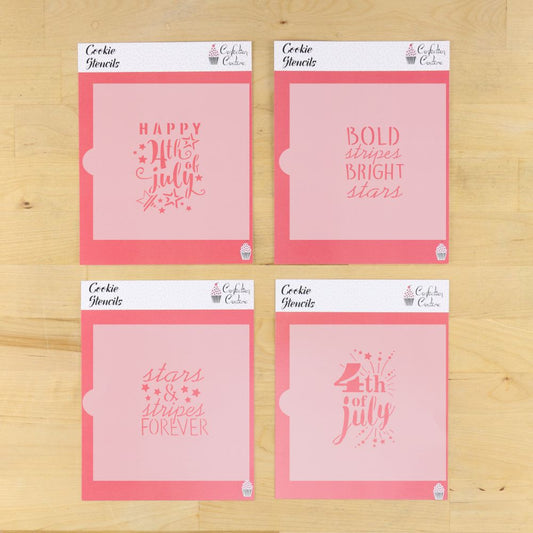 Bake and decorate up some Red, White and Blue sweet treats with our large selection of Fourth of July Stencils for cakes and cookies! Our fun and patriotic designs include everything from exploding fireworks Cookie Stencils to Overall Star Designs, we even have messages to show tribute to our country and all who fought for them!