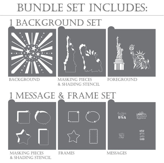 Celebrate the 4th of July with Holiday Stenciled Cookies and Cakes! Serve dazzling desserts at fourth of July picnics by decorating cookies and cakes with our Fireworks Background Cookie Stencil. Frost the perfect twinkling background using our Stars Background Cookie Stencil. Stencil a patriotic flare in frosting with our Patriotic Accent Cookie Stencil and celebrate with articulately scrumptious desserts using our Patriotic Words Cookie Stencil. Let your cookies and cakes shine this 4th of July and stencil celebratory fireworks or the Statue of Liberty onto cookies and cakes with our Fireworks Cookie Stencil Set.