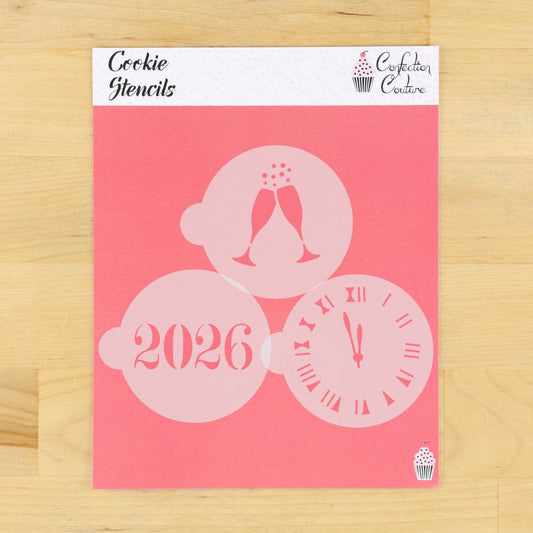 New Year's Eve Round Cookie Stencil 3 Pc Set