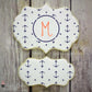 Confection Couture's Anchors Monogram Background Cookie Stencil allows you to stencil an allover background design onto your cookie, while leaving the middle blocked off so that you can then stencil on design accents, letters, monograms, numbers for birthday or even small embellishments you made separately! Each monogram background leaves a center space that is approximately 2 inches.