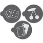 Poker Round Cookie Stencil 3 Piece Set by Confection Couture is available in 1.5, 2 or 3 inch rounds. The 1.5 inch is perfect for use on macaroons, the 2 inch is perfect for use on Oreo Cookies, our Monogram Cookie Stencils as well as specialty coffee drinks. If you prefer something larger, the 3 inch rounds work well on larger plaque cookies using our inventory of plaque cookie cutters.