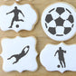 Make cookies for the soccer enthusiast in your life with this soccer player cookie stencil. Great for decorating treats for halftime, post game and MLS watch party treats . Pair these with the Soccer Messages Cookie Stencil and the Soccer Ball Cookie Stencil. This set is easy enough for any skill level.